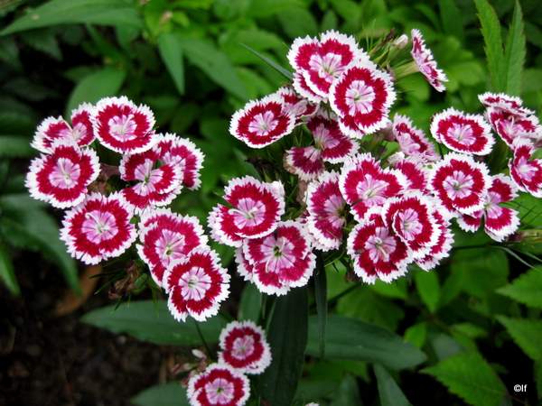 Harjaneilikka on niitä lapsuuden aikaisia ihastuksia ja siksi edelleenkin tykkään niistä. Niissä on hauskoja risteymiä niin kuin esim. nuo joissa samassa varressa on monta eriväristä kukkaa. Kaikista tummin punainen on todella tumma luonnossa. Kuvassa se ei pääse oikeuksiinsa.